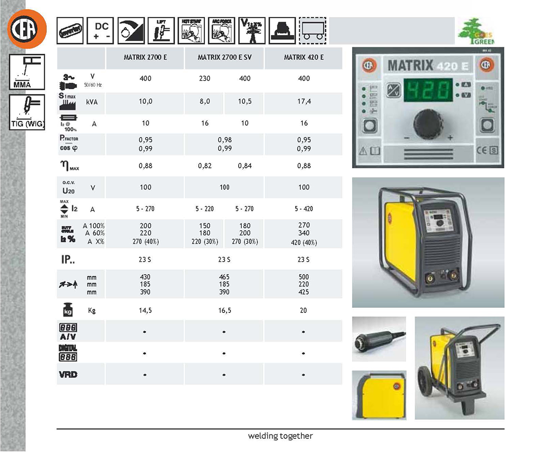 Excellent welding characteristics in MMA with any kind of electrodes, including cellulosic, and in TIG with “Lift” mode